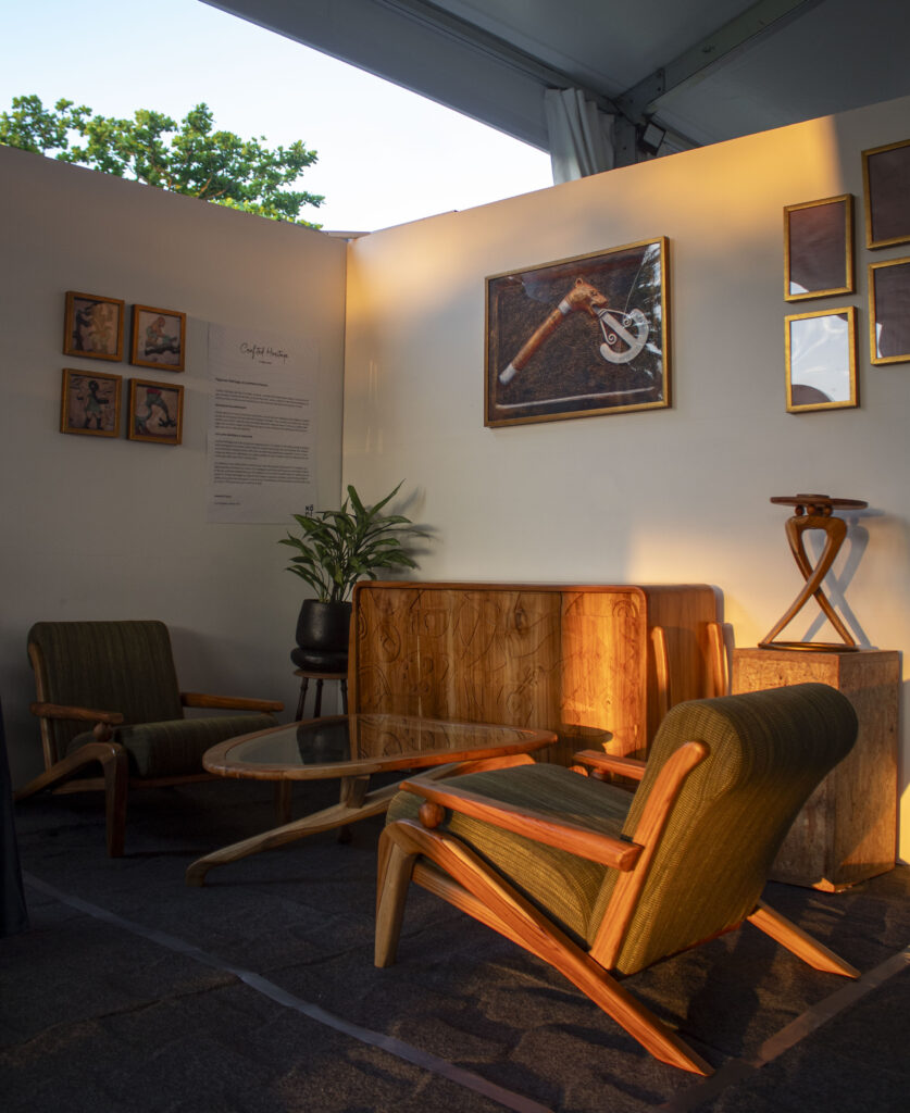 La reconnaissance pour l’Atelier Köri fait écho à sa volonté profonde : combiner design contemporain, savoir-faire artisanal local et identité culturelle forte. Lors du salon, quatre pièces étaient présentées : une table basse, des fauteuils d’appoint accompagnés d’une table d’appoint et un buffet. Toutes partagent un fil conducteur : l’intégration de la récade, symbole emblématique de l’identité béninoise, comme signature visuelle et structurelle.
